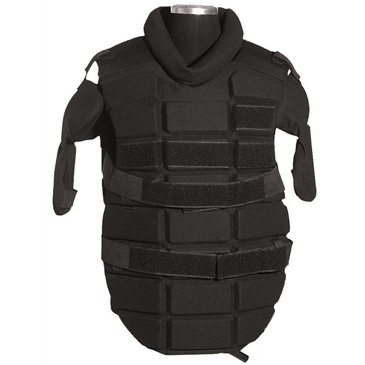 Die feste stabile Schutzweste kann sowohl für den Einsatz im Security-Bereich als auch bei Softair-Spielen verwendet werden. Der Oberkörperschutz besitzt abnehmbare Schulterprotektoren und ist dank des elastischen Materials sehr angenehm zu tragen. Die Weite ist ganz einfach mit breiten Klett-Gummibändern individuell verstellbar. Im Brust- und Rückenbereich befinden sich Klettflächen zum Anbringen von Patches. Der Halsbereich wird durch einen weichen, gepolsterten Kragen geschützt.