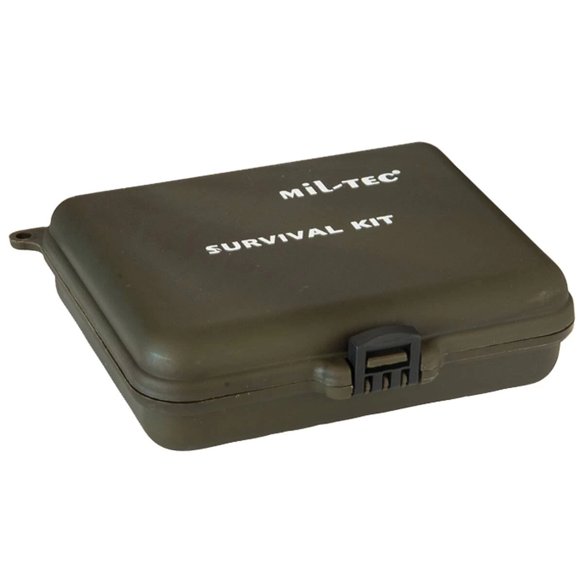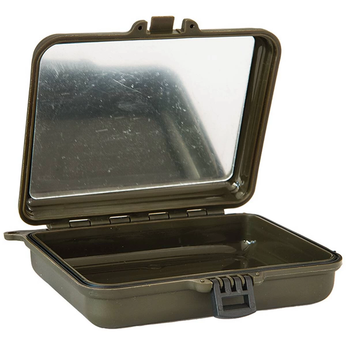Die praktische olive Aufbewahrungsbox von Mil-Tec ist ein kleiner robuster Behälter mit einem Schnappverschluss und einer rundumlaufenden Gummieinlage. Im Deckel ist ein Spiegel angebracht, der in Notsituationen als Signalspiegel verwendet werden kann. An einer Ecke befindet sich eine Öse, an der eine Befestigungskordel angebracht werden kann.