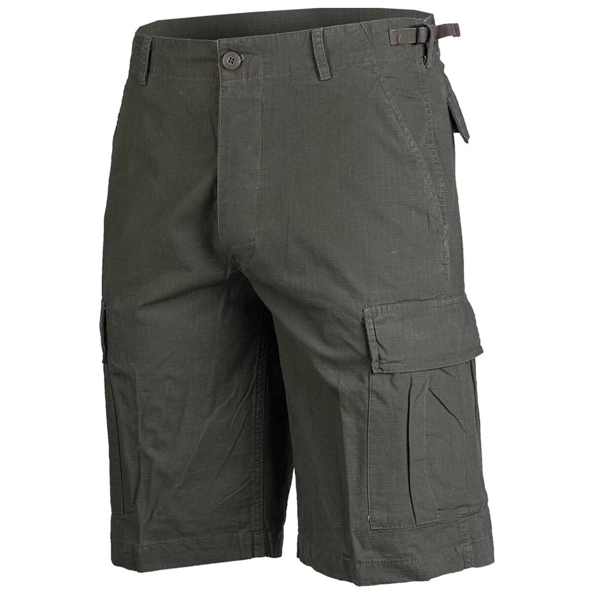 Die Ripstop BDU Shorts ist eine ideale lässige Sommer-Bermuda, da Sie aus sehr angenehmer 100% Baumwolle besteht. Sie ist sehr gut verarbeitet und besitzt 2 seitliche Einschubtaschen, 2 geknöpfte Gesäß-Pattentaschen sowie 2 seitlich aufgesetzte geknöpfte Bein-Cargotaschen. Die Taillenweite ist bequem links und rechts mittels Verstellbändern regulierbar. Außerdem hat die Bermuda sehr breite Gürtelschlaufen (4,5 cm) und einen Eingriff mit verdeckter Verschlussknopfleiste. Das Rip Stop-Gewebe ist in der Basis ein feines Gewebe und an der Rechenkästchenstruktur zu erkennen: alle paar Millimeter zieht sich ein kräftigerer Kett- bzw. Schussfaden durchs Gewebe. Sollte das Material reißen, läuft der Riss nicht ungebremst durch die gesamte Fläche, sondern stoppt am stärkeren (Rip Stop-) Faden! Spart also Gewicht und bietet trotzdem Stabilität.