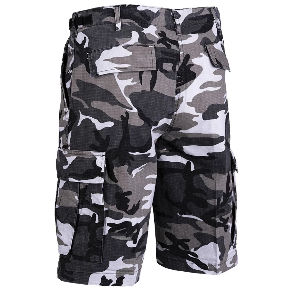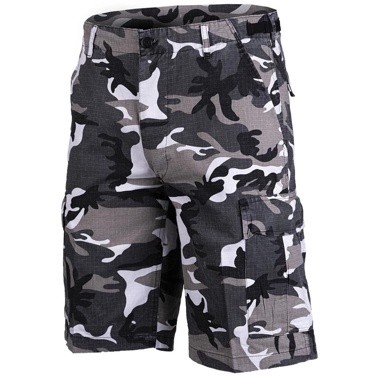Die Ripstop BDU Shorts ist eine ideale lässige Sommer-Bermuda, da Sie aus sehr angenehmer 100% Baumwolle besteht. Sie ist sehr gut verarbeitet und besitzt 2 seitliche Einschubtaschen, 2 geknöpfte Gesäß-Pattentaschen sowie 2 seitlich aufgesetzte geknöpfte Bein-Cargotaschen. Die Taillenweite ist bequem links und rechts mittels Verstellbändern regulierbar. Außerdem hat die Bermuda sehr breite Gürtelschlaufen (4,5 cm) und einen Eingriff mit verdeckter Verschlussknopfleiste. Das Rip Stop-Gewebe ist in der Basis ein feines Gewebe und an der Rechenkästchenstruktur zu erkennen: alle paar Millimeter zieht sich ein kräftigerer Kett- bzw. Schussfaden durchs Gewebe. Sollte das Material reißen, läuft der Riss nicht ungebremst durch die gesamte Fläche, sondern stoppt am stärkeren (Rip Stop-) Faden! Spart also Gewicht und bietet trotzdem Stabilität.