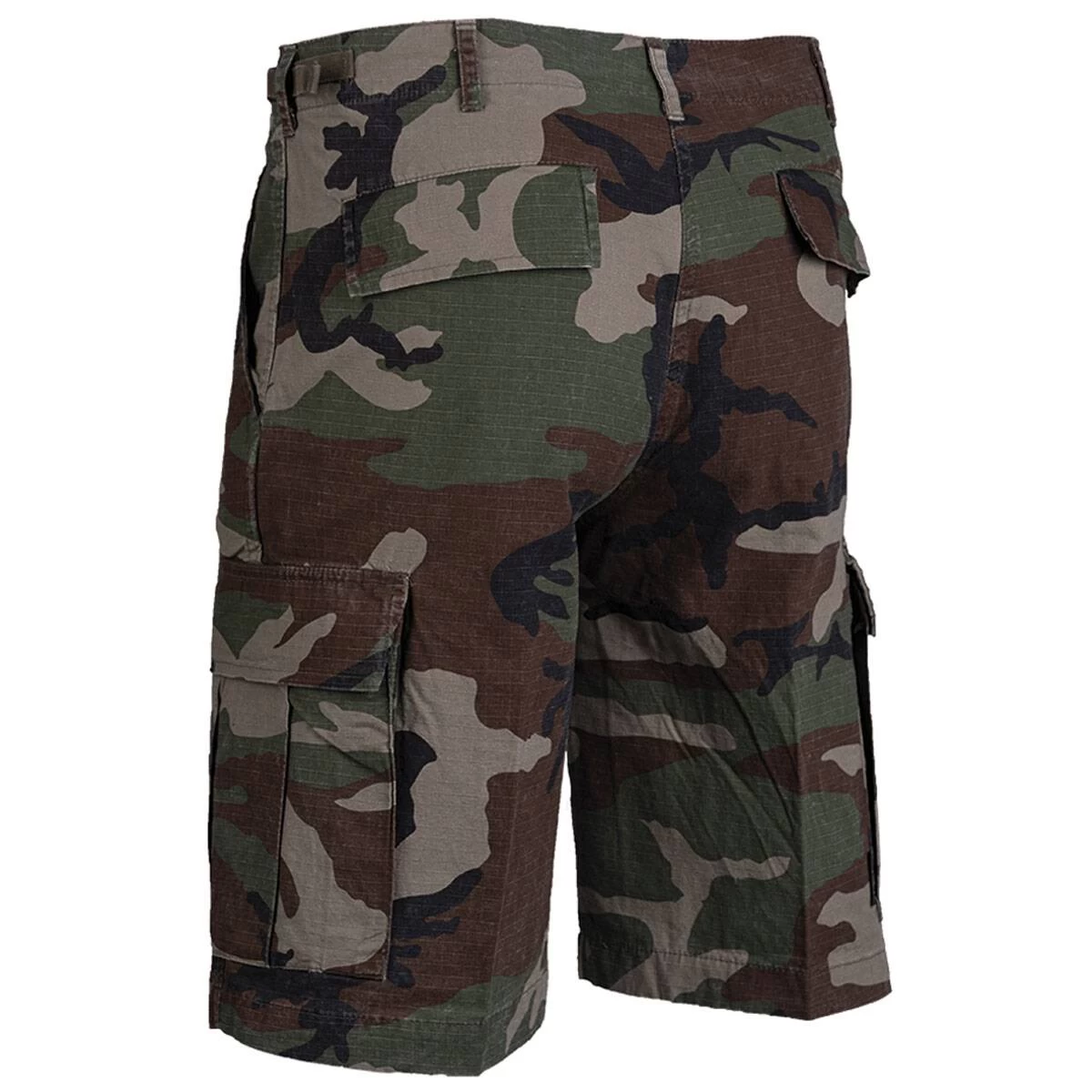Die Ripstop BDU Shorts ist eine ideale lässige Sommer-Bermuda, da Sie aus sehr angenehmer 100% Baumwolle besteht. Sie ist sehr gut verarbeitet und besitzt 2 seitliche Einschubtaschen, 2 geknöpfte Gesäß-Pattentaschen sowie 2 seitlich aufgesetzte geknöpfte Bein-Cargotaschen. Die Taillenweite ist bequem links und rechts mittels Verstellbändern regulierbar. Außerdem hat die Bermuda sehr breite Gürtelschlaufen (4,5 cm) und einen Eingriff mit verdeckter Verschlussknopfleiste. Das Rip Stop-Gewebe ist in der Basis ein feines Gewebe und an der Rechenkästchenstruktur zu erkennen: alle paar Millimeter zieht sich ein kräftigerer Kett- bzw. Schussfaden durchs Gewebe. Sollte das Material reißen, läuft der Riss nicht ungebremst durch die gesamte Fläche, sondern stoppt am stärkeren (Rip Stop-) Faden! Spart also Gewicht und bietet trotzdem Stabilität.