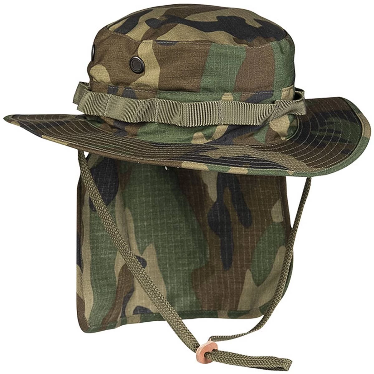 Der strapazierfähige Boonie aus robustem RipStop-Material ist ein klassischer Outdoor-Hut und hat seinen Ursprung im britischen Militär. Der praktische Nackenschutz (Neckflap)schützt zuverlässig vor Wind, Sonne, Staub, Insekten und wird je nach Gebrauch ein- oder ausgeklappt. Dieser Buschhut ist insbesondere für wärmere Tage geeignet! Er bietet dank der überdurchschnittlichen Krempenbreite einen besonders guten Sonnenschutz, zudem sorgen die seitlichen Belüftungslöcher für ausreichend Luftzirkulation. Die Hutkordel mit Kordelstopper beugt dem Verlust oder Verrutschen des Dschungelhuts vor. An den Molle-Schlaufen lassen sich leichte Ausrüstungsgegenstände oder Tarnmaterial anbringen.