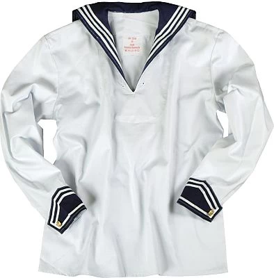 - Ärmel mit blau-weißen Manschetten und goldenen Ankerknöpfen