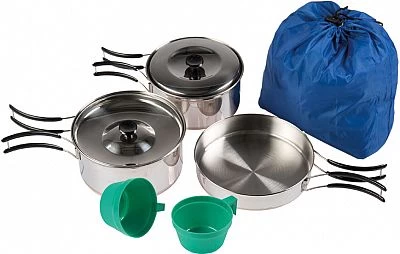 Edelstahl Kochset für zwei Personen.