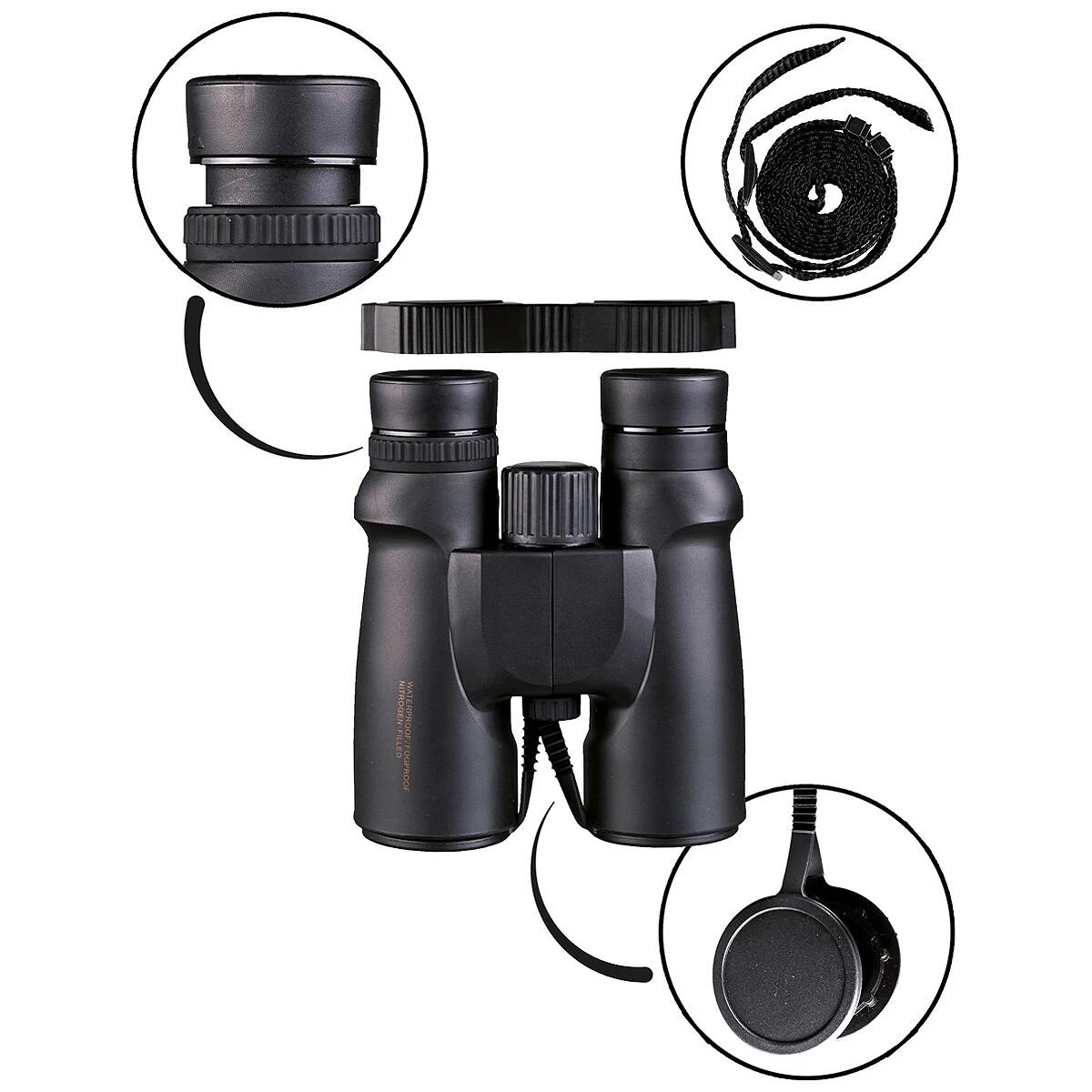 Das wasser- und stoßfeste Fernglas Waterproof von Mil-Tec mit gummierter Hülle besitzt eine Dioptrinfeineinstellung und ist damit auch für Brillenträger bestens geeignet. Die Linsen sind beschlagfrei (fogproof) und das Fernglas ist durch eine Objektivabdeckung sowie durch Okularschutzdeckel perfekt geschützt. Es wird inklusive Trageriemen, einem Reinigungstuch und einer praktischen Nylontasche ausgeliefert. Das Fernglas kann auch bequem am Gürtel befestigt werden.