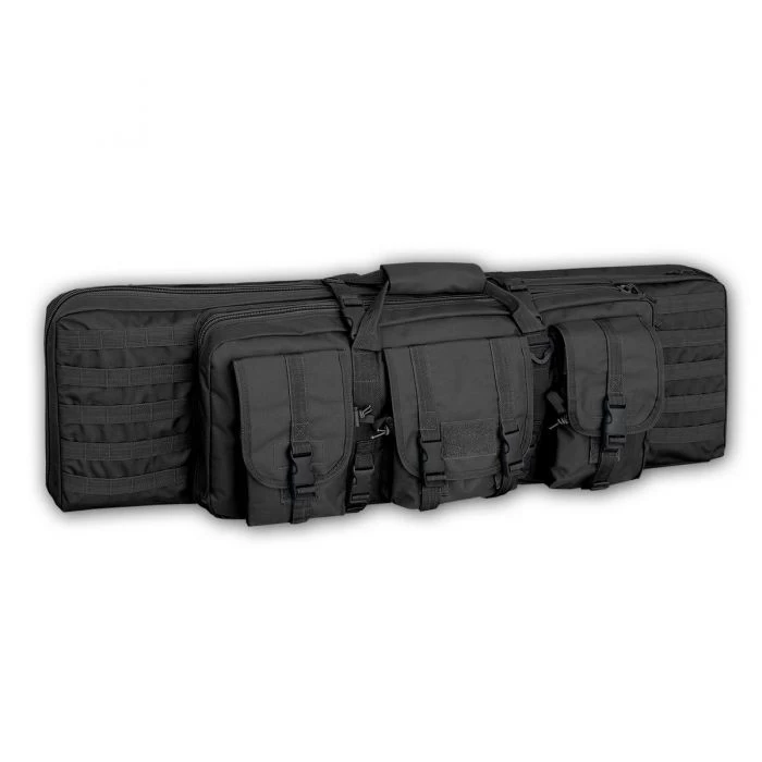 Mit einem großen, komplett aufklappbaren Hauptfach inklusive Reißverschluss-Innenfächern, eine große Reißverschlusstasche mit Klettflächen und drei Außentaschen, ist die Gewehrtasche geräumig und vielseitig ausgestattet. Zwei Klettsicherungen im Inneren halten die Langwaffe fest an ihrem Platz.