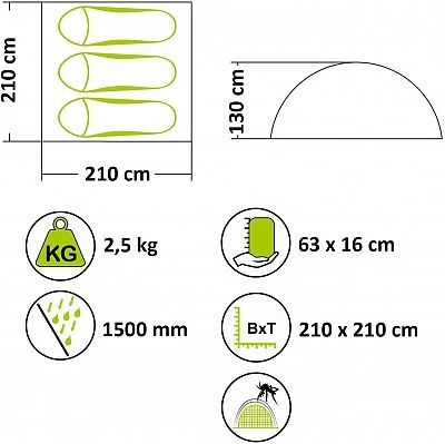 Das konventionelle 1-Wand 190T Nylon Igluzelt mit außen liegendem Gestänge, die Zelthaut hat eine Wassersäule von 1500 mm. Mit dem Moskitonetz im Zelteingang bietet das Iglu alles, was man zum Biwak braucht.