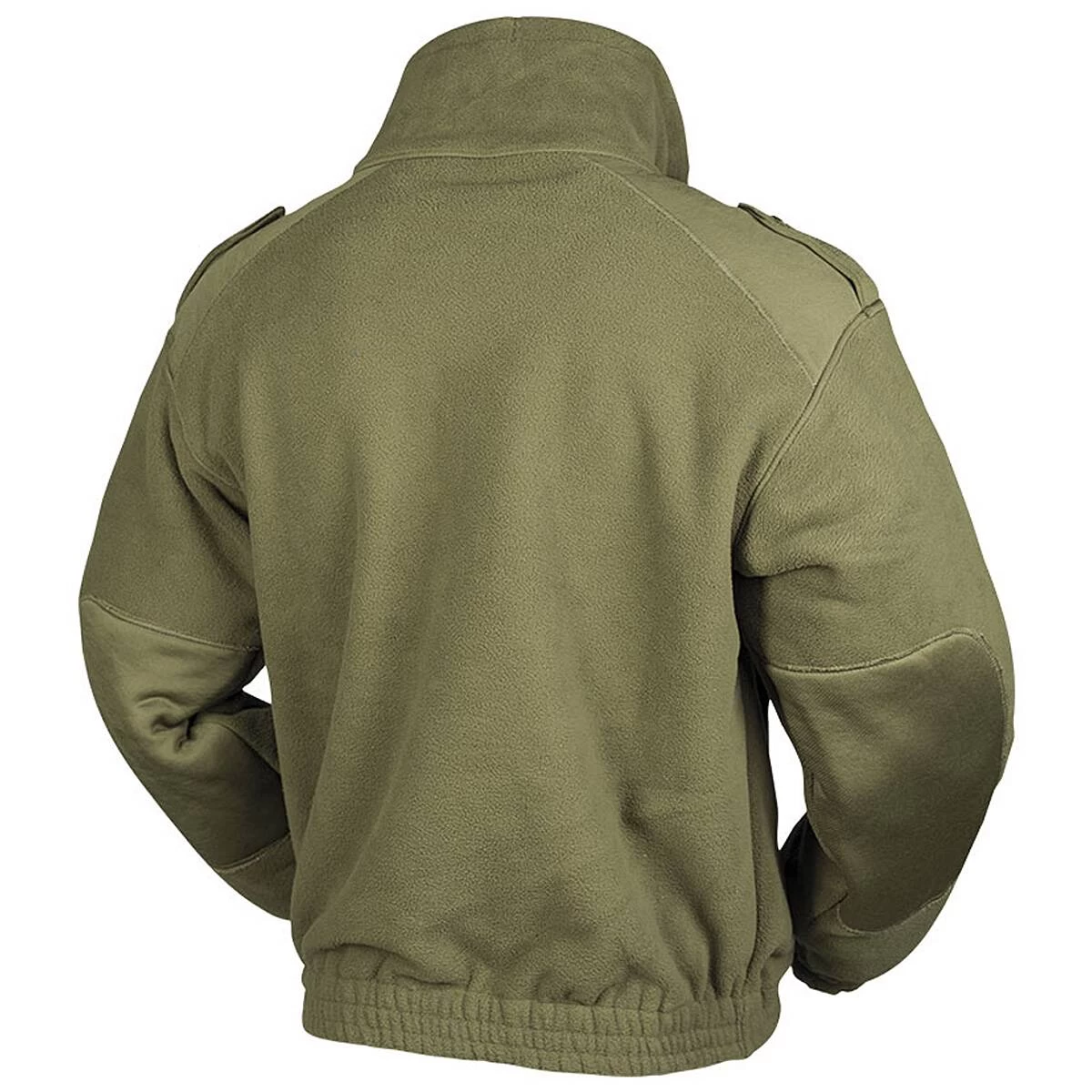 Die sehr gut wärmende Kälteschutz Fleecejacke von Mil-Tec ist ein originalgetreuer Nachbau der Französischen Kommando Jacke aus Polarfleece. Sie besitzt einen starken durchgehenden Frontreißverschluss, einen hochschließenden Kragen mit Zugband und Kordelstoppern sowie zwei seitliche Einschubtaschen, die mittels Reißverschluss verschließbar sind. An den stärker beanspruchten Stellen im Ellenbogen- und Schulterbereich befindet sich ein Besatz aus strapazierfähigem Polyester. Des Weiteren gibt es 2 Schulterklappen zum Knöpfen sowie eine Klettaufnahme vorne z.B. für einen Namensstreifen. An den Ärmeln und am Abschlussbund befinden sich breite elastische Gummizüge.