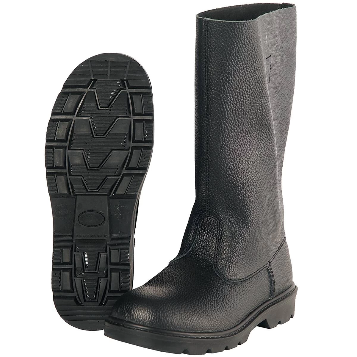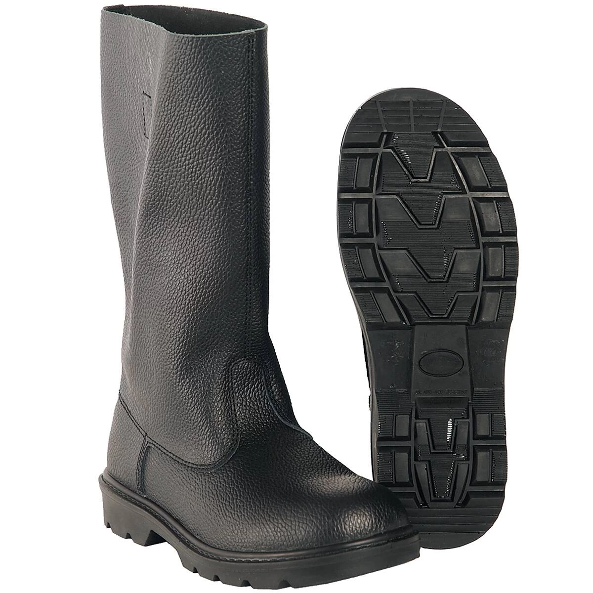 Die robusten Knobelbecher aus derben Action Leder (ein Spaltleder mit einer speziellen Beschichtung) bestechen durch Ihre Widerstandsfähigkeit gegen Wetter und Verschleiß. Die herausnehmbare Innensohle wurde aus einem hochwertigen und hervorragend isolierten Schaumstoff gefertigt. Die Füße werden damit trocken und warm gehalten. Die tiefe Profilsohle bietet durch Ihre grobe Struktur eine hohe Standhaftigkeit. Außerdem besitzen die Stiefel zwei innen angebrachte Einstiegsschlaufen, welche das An- und Ausziehen erleichtern sowie einen verstärkten Zehen- und Fersenbereich. Insgesamt sind die nicht gefütterten Knobelbecher von Mil-Tec sehr hochwertig verarbeitet, z.B. ist die Sohle geklebt und genäht.