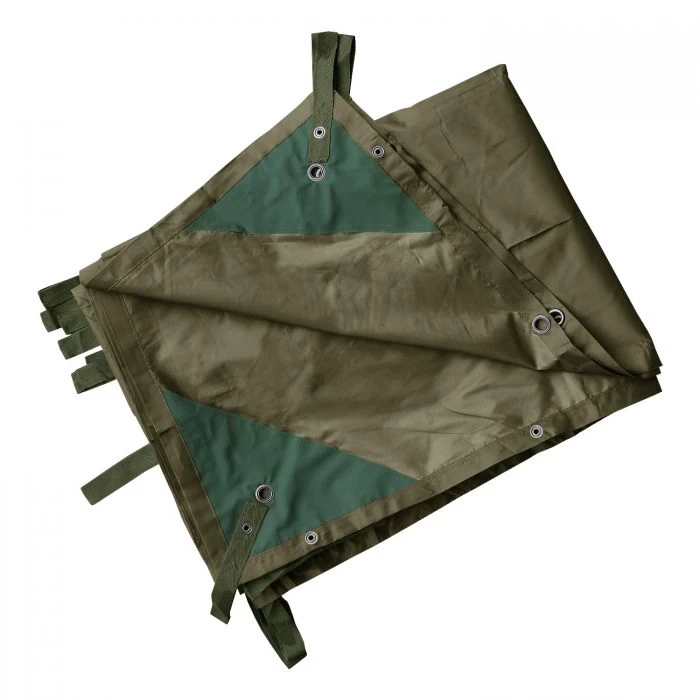 Große, universell einsetzbare und leichte Mehrzweckplane mit Metallösen sowie Schlaufen aus robustem Baumwollgewebe. Die Plane ist u.a. zur Abdichtung von Unterständen gegen Nässe, als Wind-, Regen- oder Sonnenschutz, zum Tarnen und Abdecken von Ausrüstung sowie als Zeltplane geeignet. Inklusive praktischem Packsack. Material: 100% Nylon, Polyurethan beschichtet. Maße: 265 x 170 cm. Gewicht: 439 g.