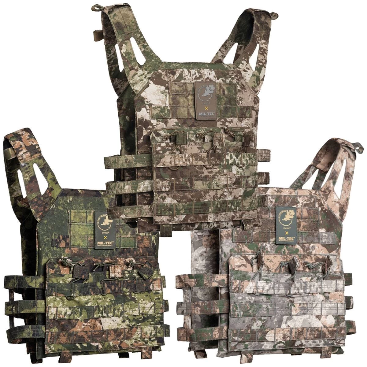 Die Plate Carrier Weste Generation II ist eine robuste Einsatzweste, welche an Vorder- und Rückseite mit ballistischen Schutzplatten (Level III und IV, z.B. die von uns angebotenen Schutzplatten) ausgestattet werden kann. Sie besitzt vorne- und hinten ein Molle-Schlaufen-System sowie Seitenbänder. Vorne befinden sich 3 Magazinfächer sowie drei strapazierfähige Gummischlaufen zum Fixieren der Magazine sowie zum Anbringen weiterer Gegenstände. Außerdem gibt es dort ein kleines Klettfach sowie 3 Klettstreifen zum Anbringen von Namensstreifen oder Patches. Die Weste lässt sich auf der Vorderseite durch 3 große, starke Klettverschlüsse komplett öffnen und kann perfekt an die Größe des Trägers angepasst werden. Die Schultergurte lassen sich ebenfalls durch Klettverschlüsse öffnen. Das hintere Gummiband-Schlaufen-System gewährleistet ein schnelles An- und Ausziehen der Weste.