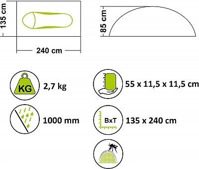Innenzelt: 100% Polyester, Polyurethan beschichtet