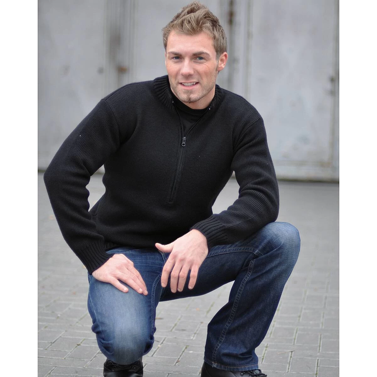 Der Schweizer Armeepullover besticht durch seine klassische Optik und besteht aus enggestricktem, reinen Polyacryl. Er besitzt Strickbündchen an den Ärmeln und am Saum sowie einen Rundhalsausschnitt mit tiefem Reißverschluss. Er ist perfekt für die kühlen Tage des Jahres geeignet.