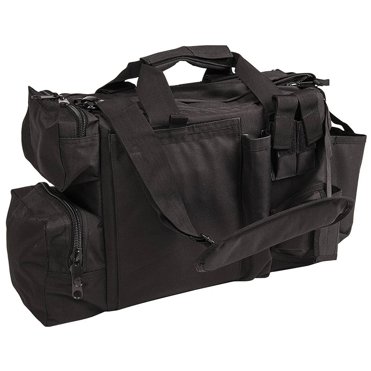 Die aufwändig und robust verarbeitete Mehrzwecktasche für den Security Bereich besitzt ein großes Innenfach mit versetzbarer Längsteilung, 2 geschlossene Fronttaschen sowie eine geteilte offene Fronttasche. Außerdem gibt es ein großes Außenfach mit Namensklett auf dem Deckel, ein Taschenlampenfach, eine Schlagstockhalterung, 2 Magazintaschen sowie eine Utensilientasche. Der Taschenverschluss erfolgt durch einen parallelen Doppel-Reißverschluss und es gibt Tragegriffe sowie einen abnehmbaren Schulter-Trageriemen. Die vielen praktischen Details machen die Tasche zum perfekten Platz für sämtliche Security Ausrüstungsstücke.