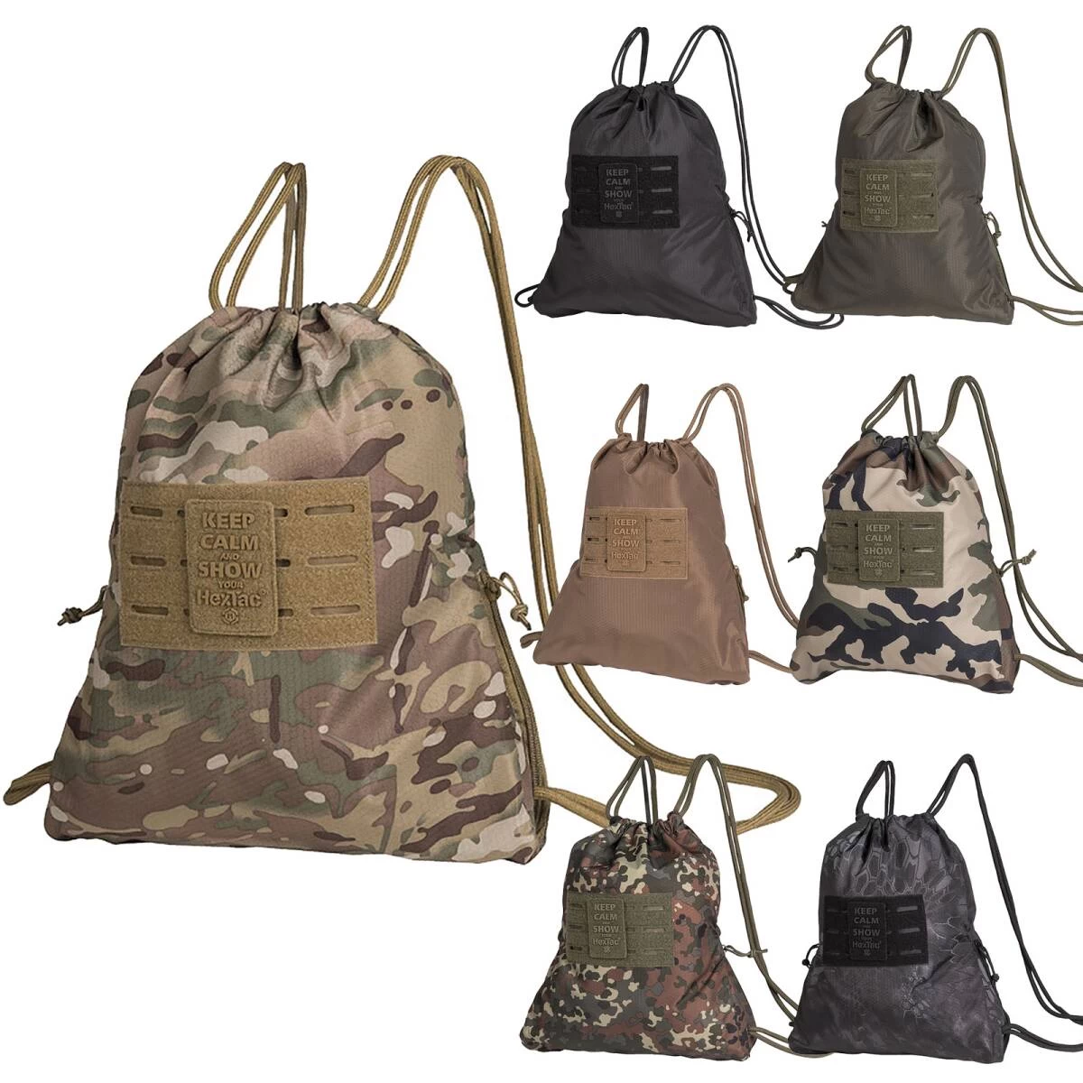 Hier kommt das Revival des klassischen Sportbeutels in taktischer Ausführung in vielen tollen (Tarn-)Farben! Er besticht durch sein äußerst strapazierfähiges Material mit dem HexTac® Muster und besitzt eine große Klettfläche auf der Vorderseite mit Laser-Cut-Loop-System. Der Turnbeutel wird bereits mit einem HexTac® Patch auf der Klettfläche ausgeliefert. Dieses kann selbstverständlich durch ein eigenes Patch ausgetauscht werden. Der Sportbeutel besitzt einen Kordelzug-Schulterriemen, der beliebig verstellbar ist und sich gleichermaßen für Erwachsene wie für Kinder eignet. Zwei Seitentaschen mit Reißverschluss bieten Platz für die kleinen Dinge des Alltags, wie Schlüssel, Smartphone, Geldbeutel usw. Der Zugriff auf die Seitentaschen ist auch während des Tragens problemlos möglich. Das Schließen dieses multifunktionalen, sehr leichten und trotzdem robusten Beutels geschieht traditionell mittels Durchzugband.