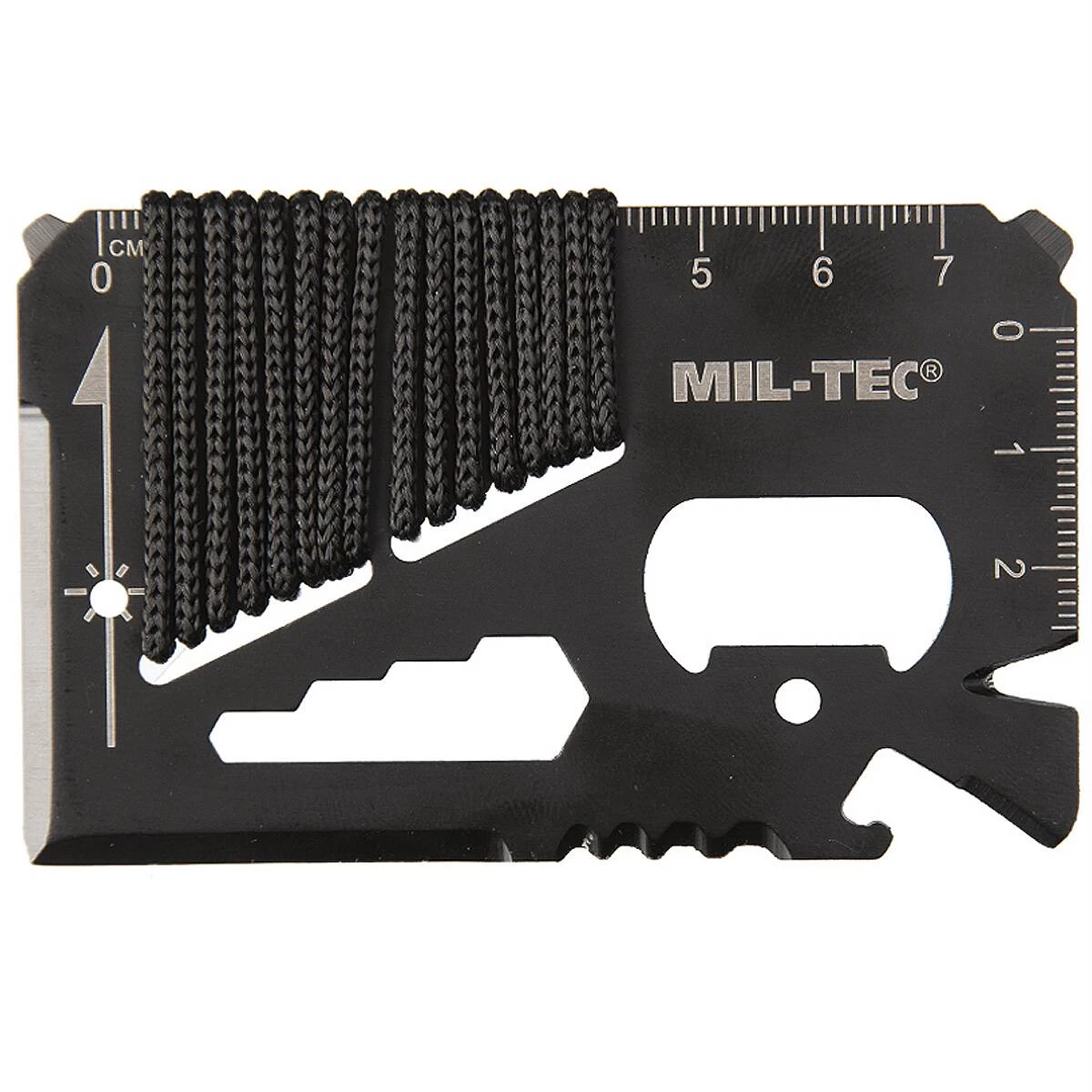 Das praktische Survival Tool PARACORD von Mil-Tec aus hochwertigem rostfreien Stahl im Scheckkartenformat wird mit einer Transporthülle ausgeliefert. Es verfügt über insgesamt 12 Funktionen:
