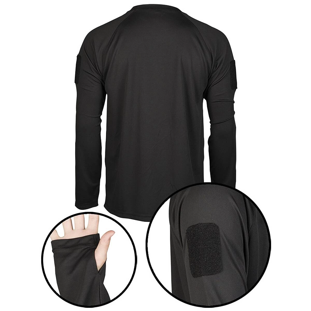 Das sportlich geschnittene Langarmshirt aus schnelltrocknendem und atmungsaktivem Material zeichnet sich insbesondere durch seinen hohen Tragekomfort aus. Der Raglan-Schnitt sorgt für eine optimale Bewegungsfreiheit und aufgrund der Daumenschlaufen am Ärmelbund liegt das Shirt gut an und verrutscht nicht. Zusätzlich wärmt das Rundhalsshirt optimal. Außerdem besitzt es Klettflächen auf den Oberarmen zum Anbringen von Patches.