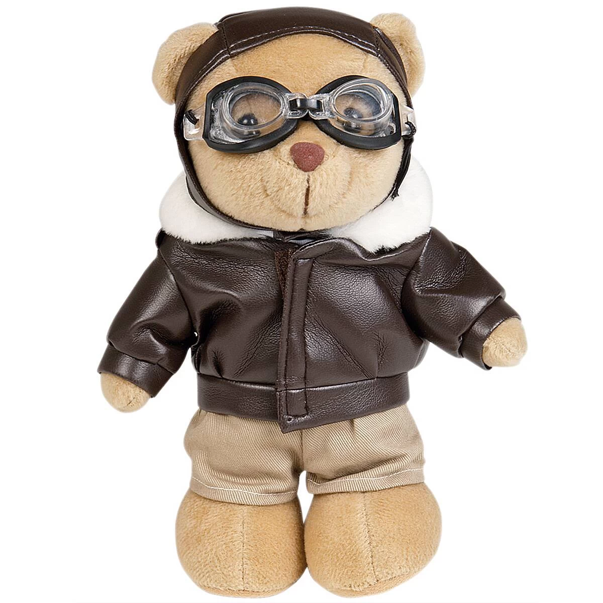 Dieser 22 cm große Teddybär mit Pilotenjacke und Hose sowie Pilotenhaube und -brille ist die ideale Geschenkidee für Piloten oder Militärfans und wird viel Freude bereiten. Er kann selbständig stehen. Das komplette Outfit kann man bei Bedarf ausziehen.