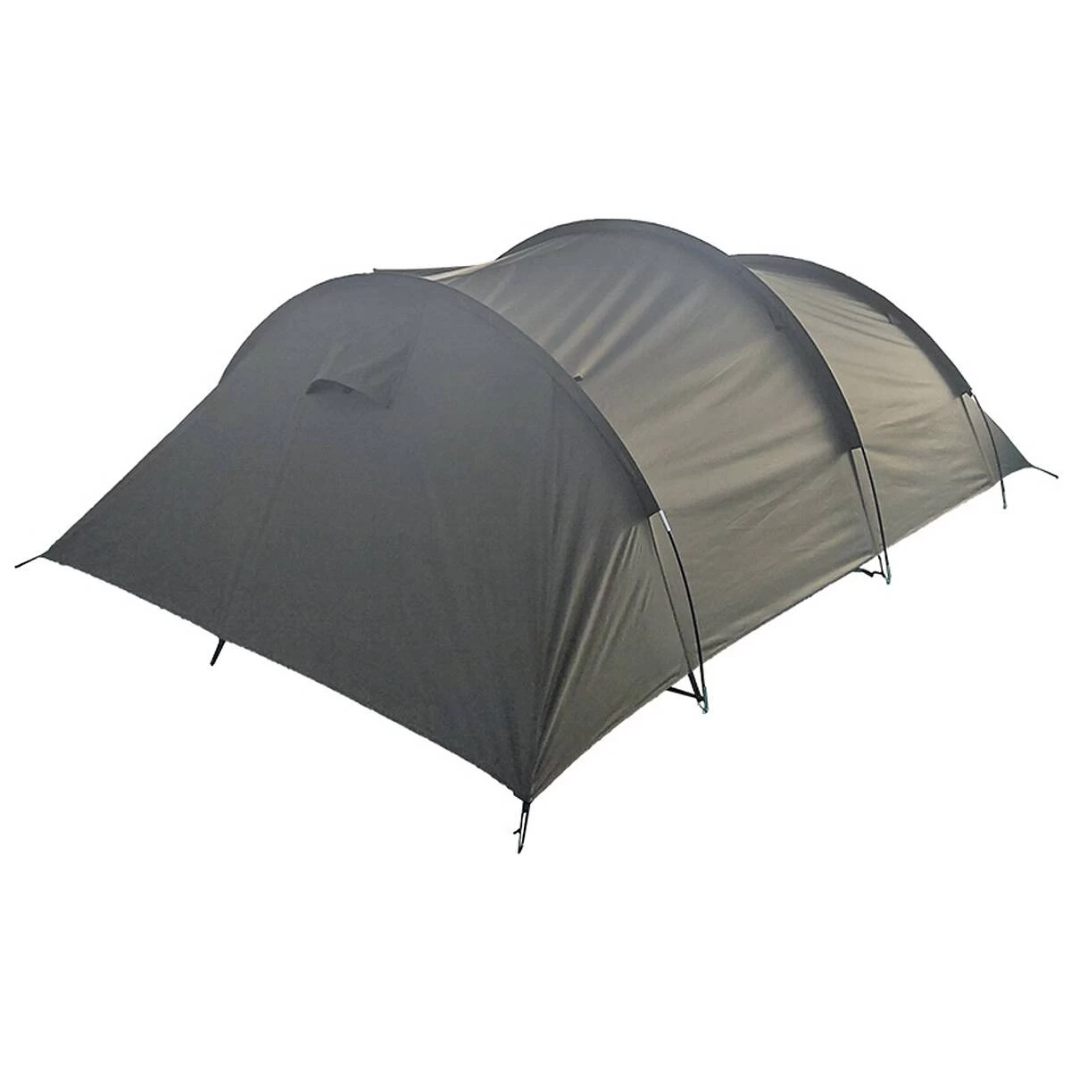 Das 4 Personen Zelt von Mil-Tec ist ein praktisches Zelt mit Zeltvordach, das genug Stauraum für Gepäck bietet. Das Gestänge besteht aus Fiberglas. Der Eingang befindet sich in der Mitte zwischen Stauraum und Schlafbereich die damit räumlich voneinander abgetrennt sind. Damit kann die eine Seite des Zeltes als Ruhezone dienen, während man auf der anderen Seite sein Gepäck verstauen kann. Unter dem Zeltdach finden dann noch Stühle, ein kleiner Campingtisch oder andere Ausrüstungsgegenstände genügend Platz.