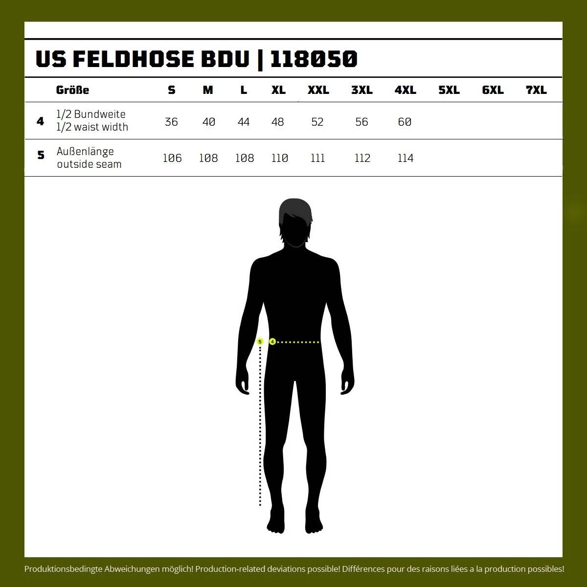 Hier erhalten Sie die besonders bequeme Feldhose vom Typ BDU (Battel Dress Uniform), die sich von unseren Tarnhosen in modischer Form durch Ihre robuste Qualität (insbesondere durch die Verstärkungen im Knie- und Gesäßbereich) unterscheidet. Damit ist man auch für den härtesten Einsatz bestens gerüstet und aufgrund der hervorragenden Qualität wird man lange Freude an der Hose haben.