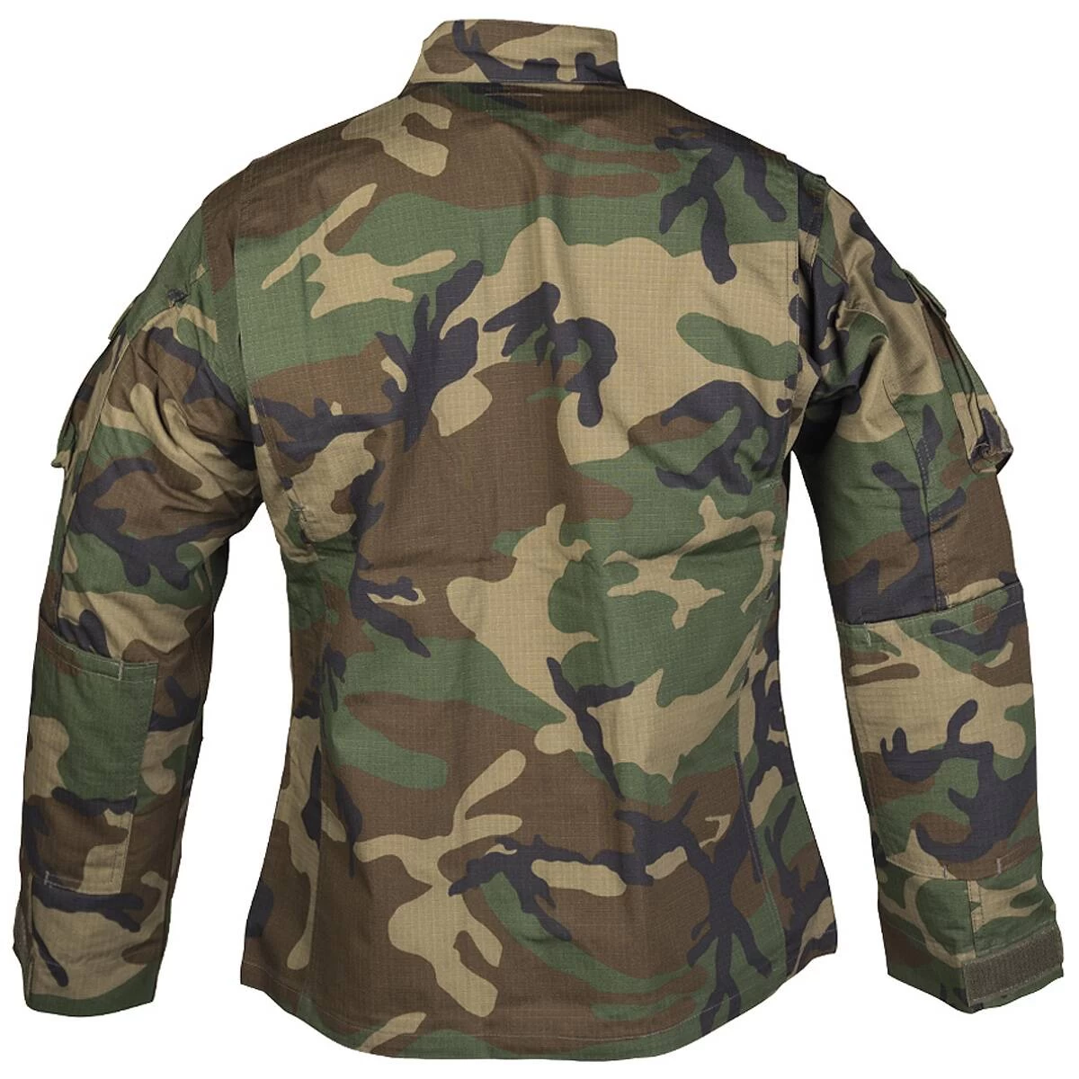 Die originalgetreue ACU (Army Combat Uniform) Feldjacke ist das aktuelle Basismodell der US Army für alle Einsatzgebiete und wird aus hochwertigem Rip Stop-Material gefertigt, welches ein extrem reißfestes Baumwollmaterial und damit extrem beanspruchbar ist. Sie besitzt 2 schräg aufgesetzte Brusttaschen mit seitlicher Patte und Klettverschluss sowie 2 Schultertaschen mit Klett zum Anbringen von Abzeichen. Der Ellenbogenbesatz kann durch Polsterung verstärkt werden. Des Weiteren gibt es einen verdeckten 2-Wege-Frontreißverschluss mit Klettverschluss, einen Stehkragen mit Klett zur Weitenregulierung sowie 2 Rückenfalten für mehr Bewegungsfreiheit. Auf Brusthöhe befinden sich 3 Klettflauschpatches zum Anbringen von Namensschildern usw. Der Armabschluss ist ebenfalls mit Klett in der Weite verstellbar.