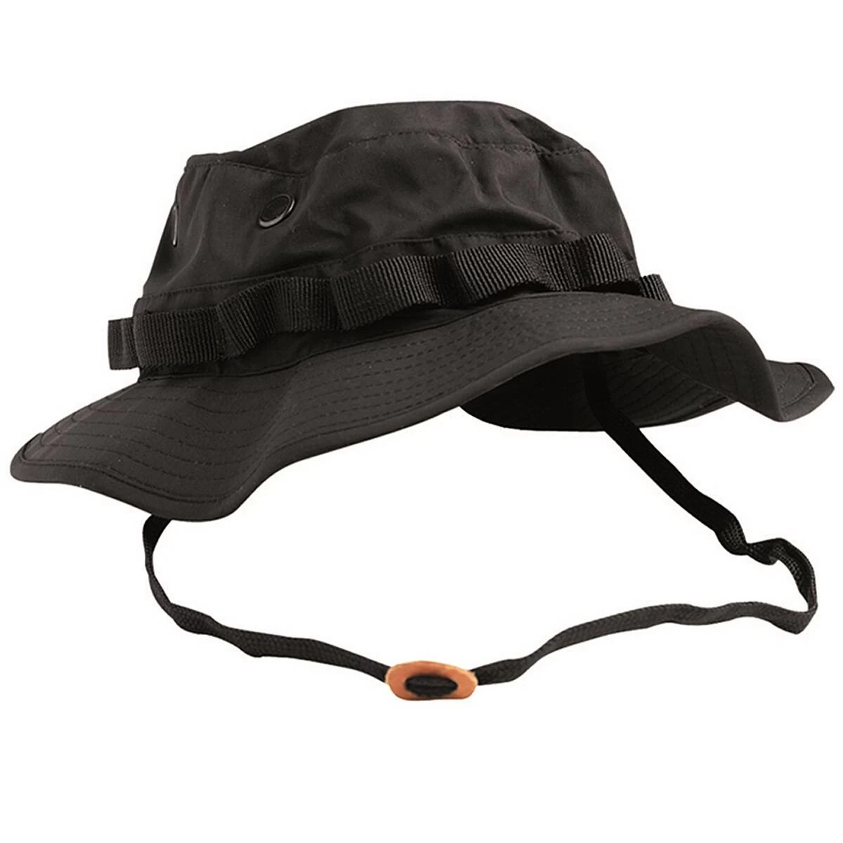 Der wasserfeste Boonie aus einem Trilaminatgewebe mit seitlichen Belüftungslöchern bietet optimalen Schutz vor Regen und Sonne und sorgt für ein sehr angenehmes Kopfklima. Er besitzt eine ca. 6 cm breite wellenförmige Krempe, einen verstellbaren Kinnriemen mit Kordelstopper, umlaufende Molle-Schlaufen und lässt sich platzsparend zusammenrollen.