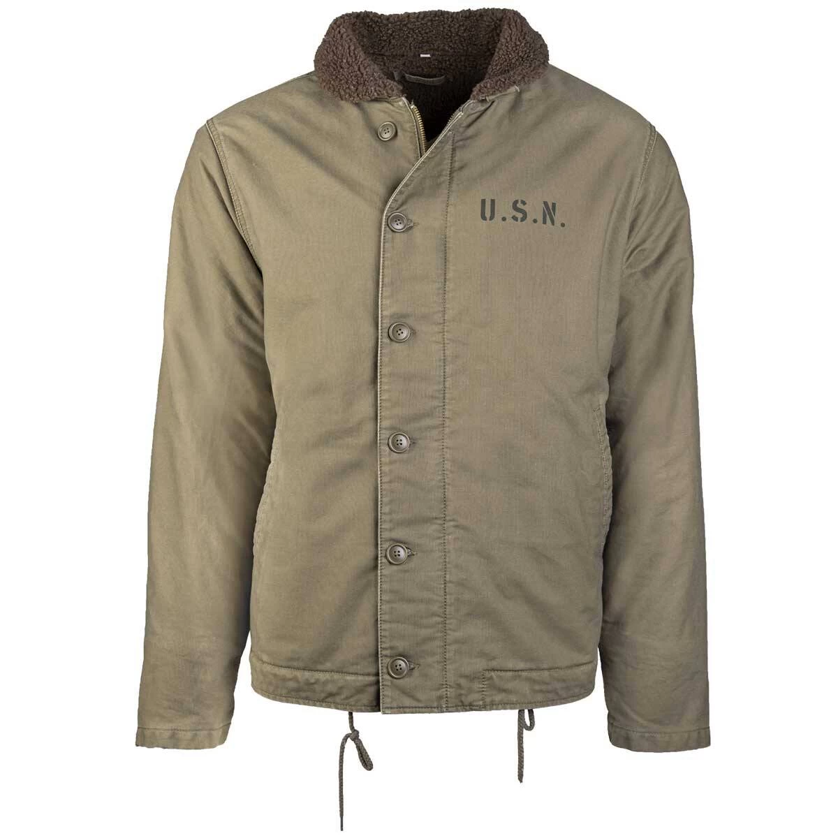 Es handelt sich um den originalgetreuen Nachbau der US Navy Deck Jacket N-1 mit U.S.N. Print auf der Brust. Sie ist mit einem weichen, warmen Teddyfutter ausgestattet und daher perfekt für den Einsatz an kühlen Tage geeignet. Diese Jacke besitzt einen robusten Metall-Frontreißverschluss, einen verdeckten Frontreißverschluss mit Knopfleiste, 2 Schubtaschen, Saumschnürung und elastische Ärmelbündchen.